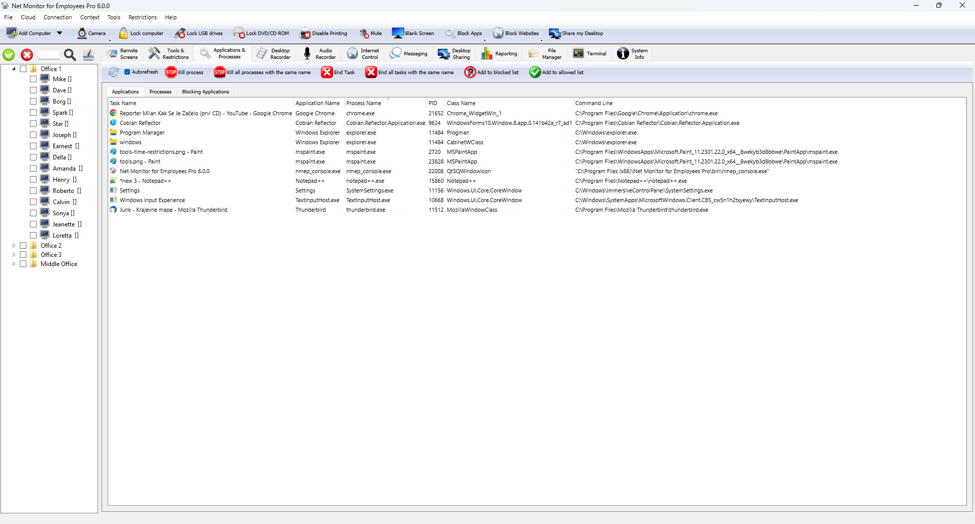 एप्लिकेशन आपको यह देखने की अनुमति देता है कि कर्मचारी के कंप्यूटर मॉनिटर पर वर्तमान में क्या प्रदर्शित हो रहा है। इस तरह आप जल्दी से कर सकते हैंखोज करनायदि आपके कर्मचारी हैंकार्य कर रहे हैंवे हैंके लिए भुगतान किया.